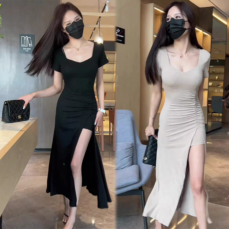 【褶皺設計感開叉連衣裙】洋氣減齡,顯白顯瘦,寬鬆舒適,不挑身材!